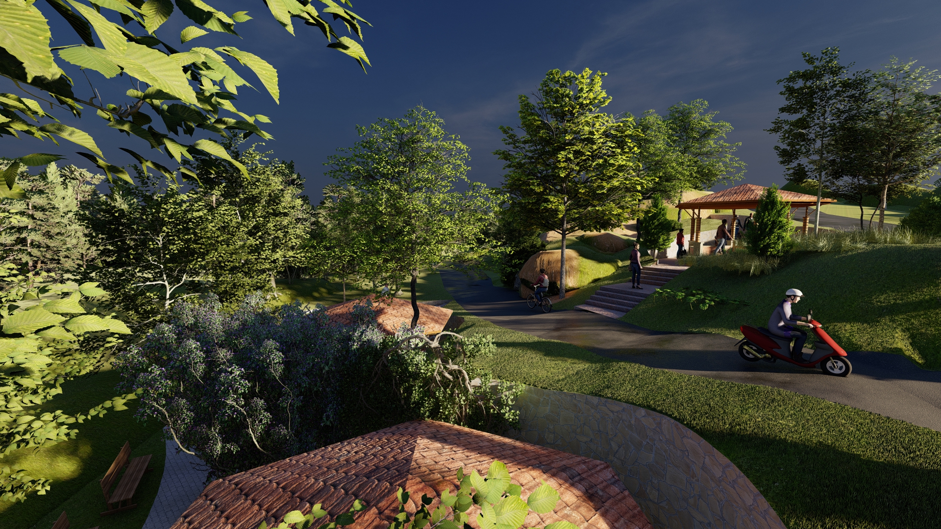 This project involves the conceptual landscape and architectural design of a religious and recreational site surrounding Dungbhunge Gufa, situated on contoured land. Inspired by the infinity shape, the design connects various levels of the site through thoughtfully placed taharas (resting spaces), creating a continuous and meditative visitor experience. Additional elements include an entrance gate, toilet, and changing room facilities, all integrated to blend with the natural terrain. The project aims to elevate the site’s spiritual atmosphere while supporting its role as a growing domestic tourism and religious hub for the local and neighboring communities.