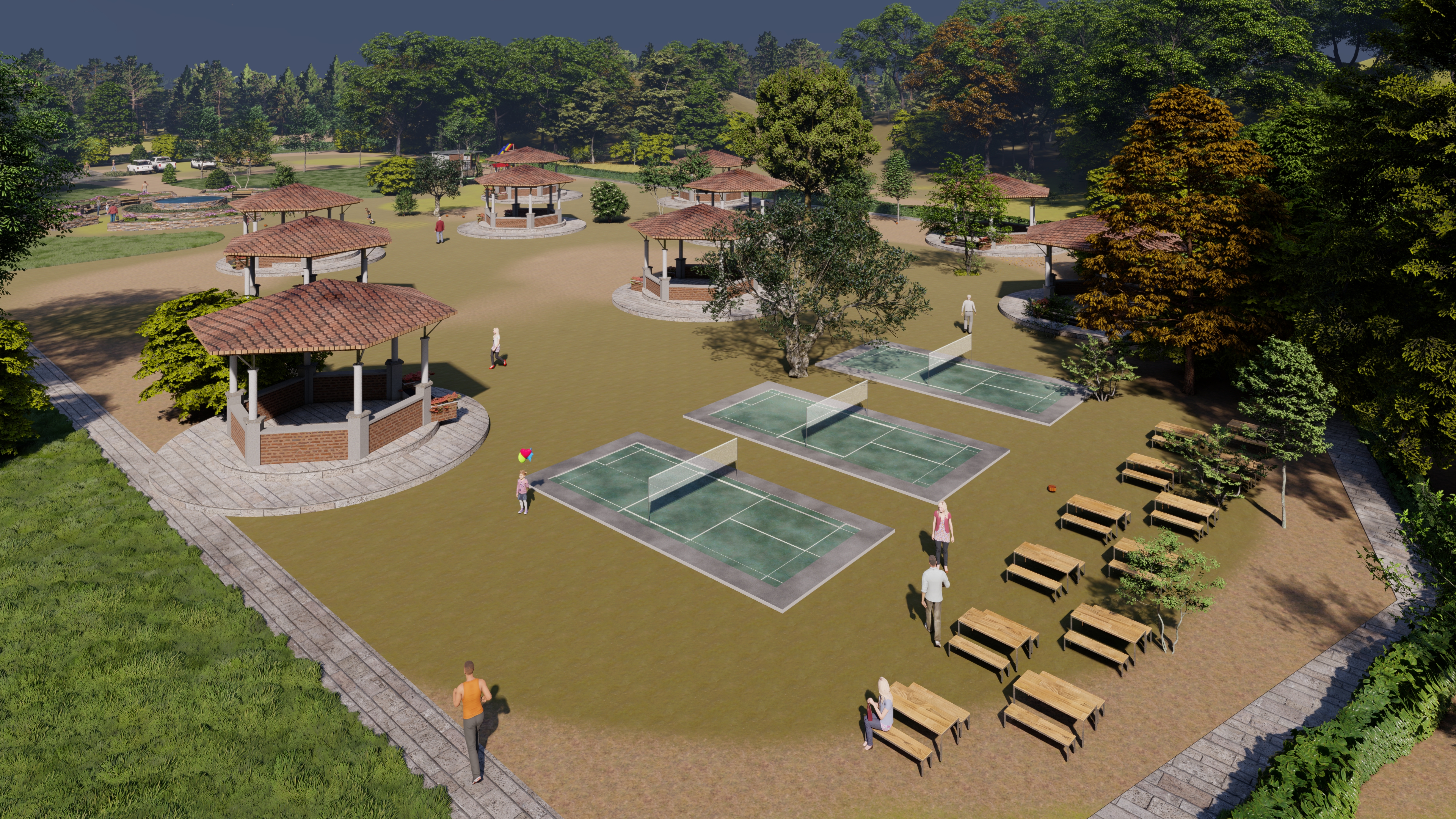This project involves the conceptual landscape and architectural design of a recreational picnic park located in Bhaktapur. Designed to serve as a serene leisure destination for families and visitors, the site features well-planned pathways, circular gazebos, floral landscaping, and various activity zones. Key elements include open seating areas, badminton courts, shaded rest pavilions, and picnic benches, all thoughtfully arranged to encourage social interaction and outdoor enjoyment. Surrounded by lush greenery and set within a naturally contoured terrain, the project emphasizes accessibility, comfort, and harmony with nature, promoting domestic tourism and community engagement.